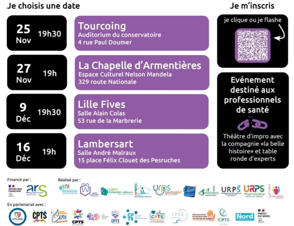 Après plusieurs mois de travail, nous vous proposons avec le collectif inter CPTS, 4 soirées de sensibilisation à destination des professionnels de santé!
